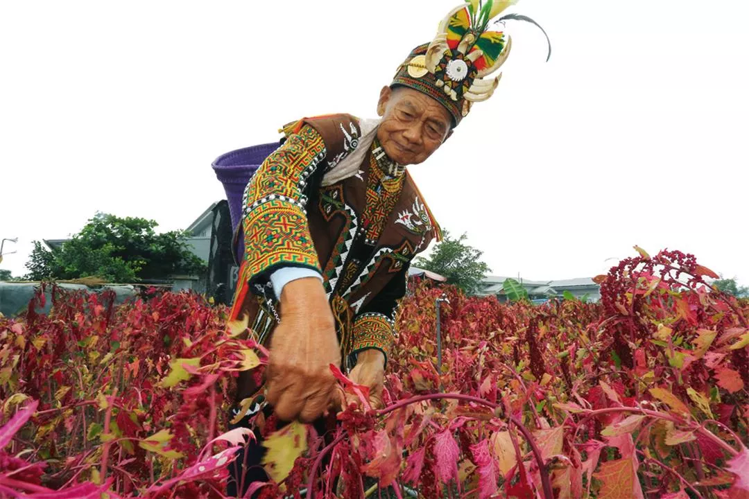 常見於原住民部落的台灣藜,八八風災後成為不少部落振興在地產業的重要作物。圖為阿禮部落原住民巴清一正在採收紅藜。