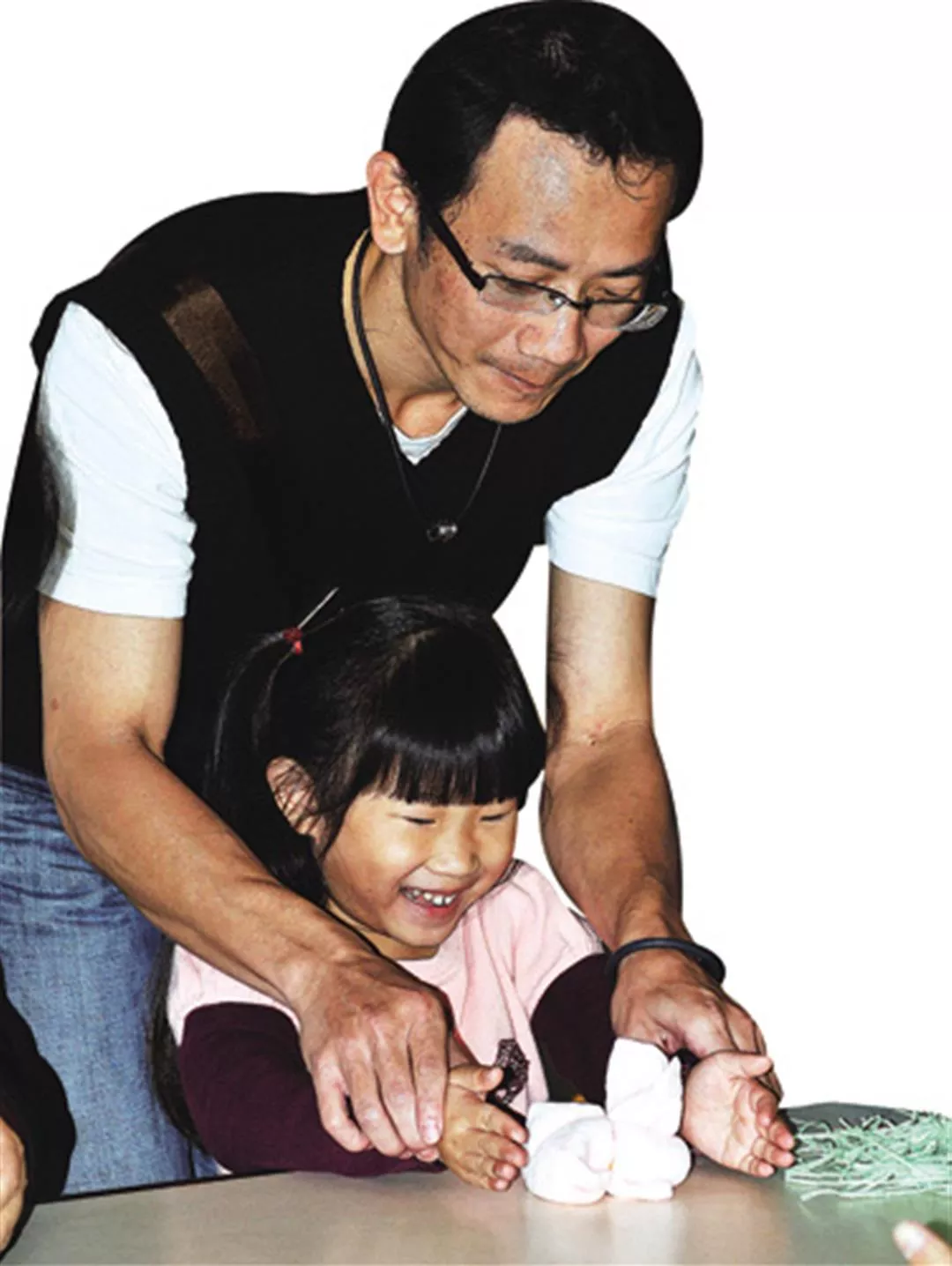 爸爸帶著女兒在DIY教室做造型毛巾,小女孩完成時臉上的笑容,正是觀光工廠努力開發的附加價值。
