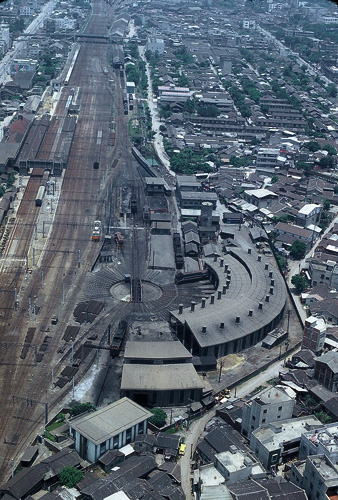 滿清甲午戰敗後,日本人把現代化的火車工業帶進台灣,於1895~1945年治台期間,在今台鐵台北、新竹、彰化、嘉義及高雄站,以及2008年年底走入歷史的高雄港火車站周邊,各建有一座扇形車庫。