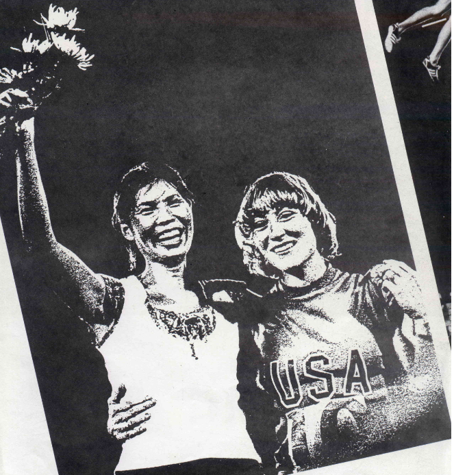 徑賽的情形也是一樣,一千五百公尺比賽每跑一圈,紀政就報出領先選手的名字,觀眾立刻鼓掌,替選手們打氣。