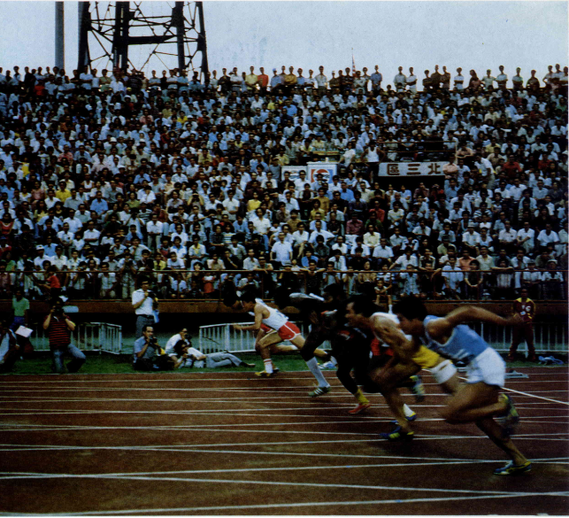 比賽舉行的場地——臺北體育場,自然更經過細心的整理與維護,跑道內綠草如茵,紅色的人工跑道上畫上了清晰的白線,看臺四周各國旗幟隨風飄揚、構成了一幅壯麗悅人的圖畫。