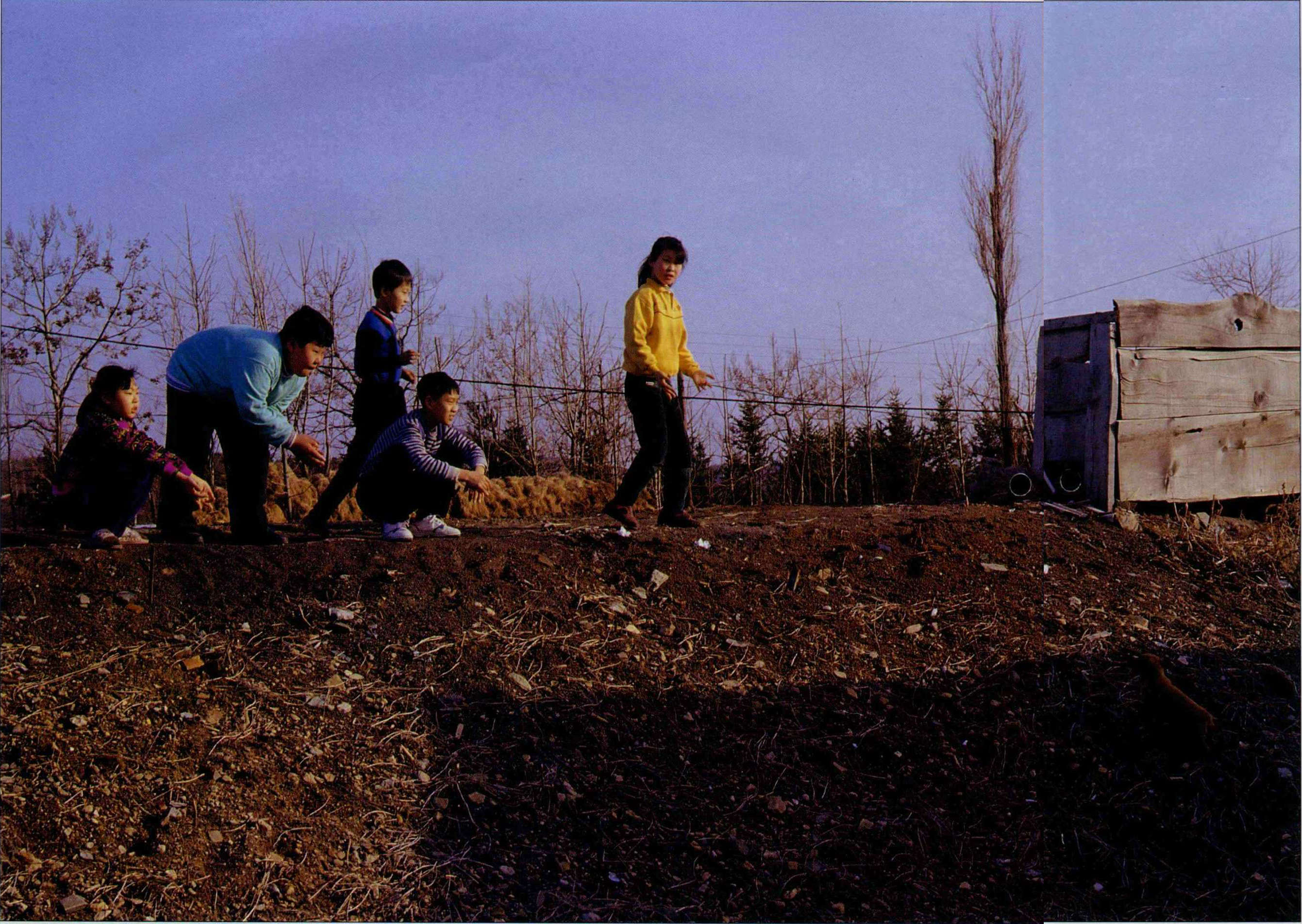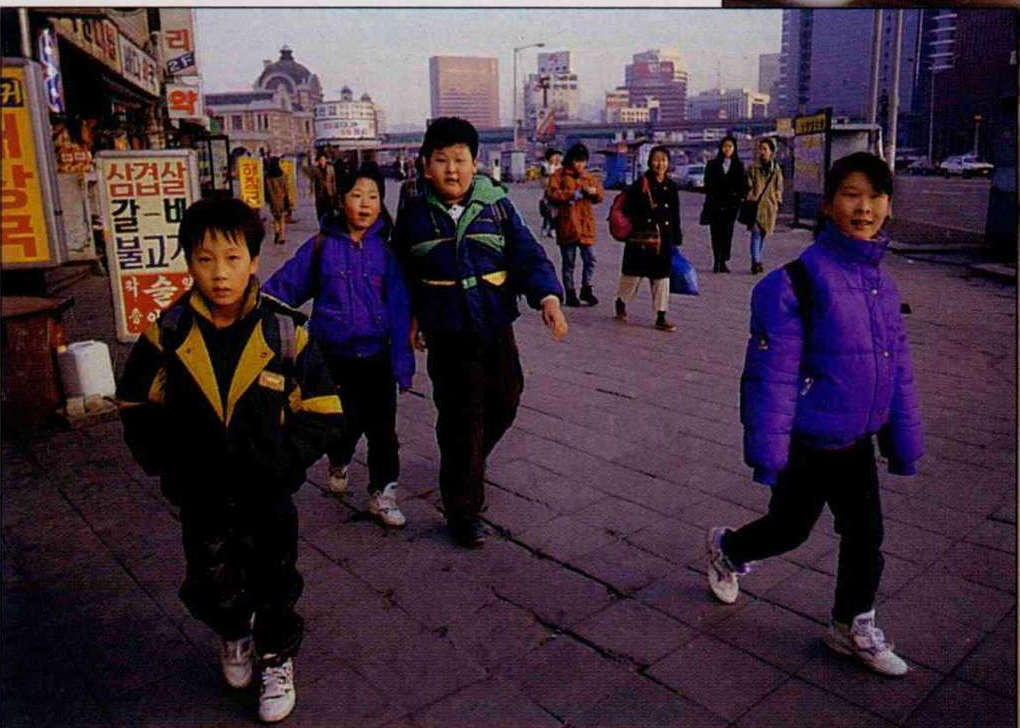初春的漢城,早晨氣溫都在零度左右,地上潑了水就成冰,而火車外的旱田遍野銀霜。孩子們個個把衣領翻得高高的,脖子縮得緊緊的。