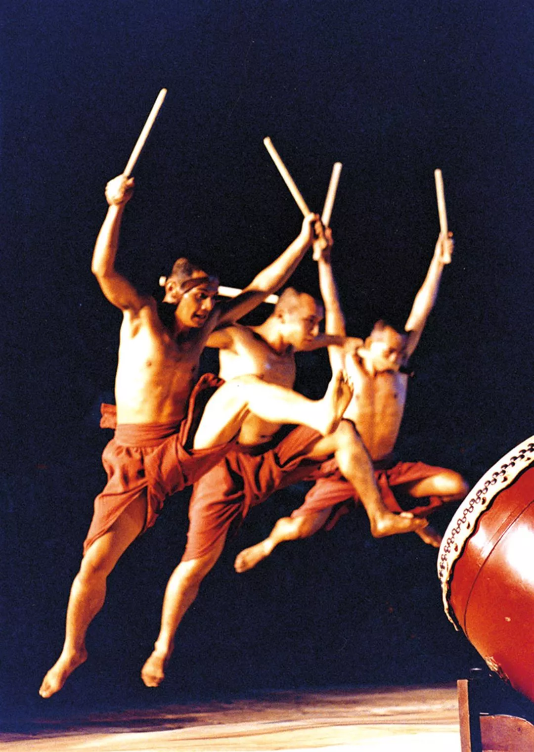 10年前在優人神鼓接受表演訓練,讓陳永龍(左一)學會在舞台上放鬆。