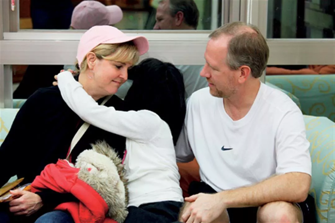 離台前一天,就讀小學五年級的香香,依偎在美國養父母身旁。