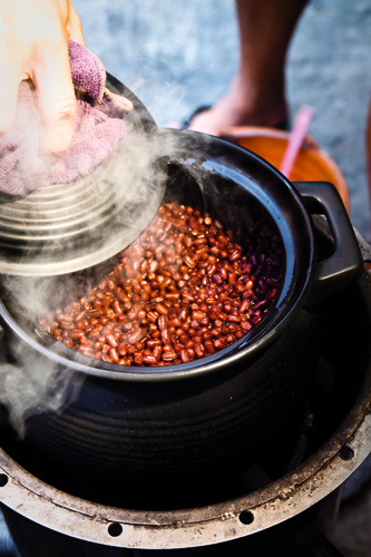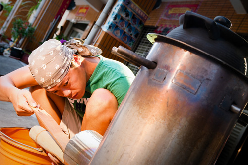 10月搬至固定店面定點營業之前,大可都是先在新化的家門口架起朋友幫忙設計的「火箭爐」,靠著添柴生火煮紅豆,一鍋可煮2台斤;煮好的紅豆湯再送到店裡賣,賣完為止,一天可賣二十幾碗。
