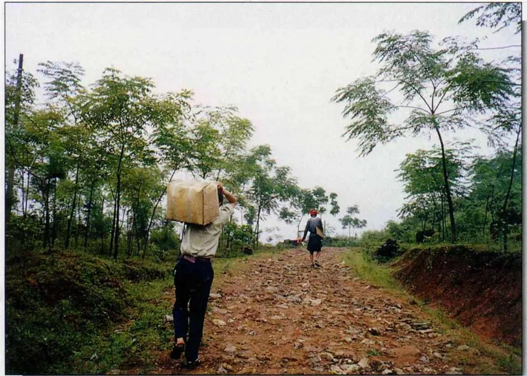 山區物質貧乏、交通不便,港人捐贈的民生物品得用人力運送上山。
