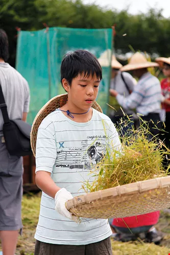 8月中的收穫季節,人禾基金會臨時招募了一群來自大學社團、貢寮國小與大溪國小的青年朋友,組成「青年割友會」,一起出力幫忙收割,解決農民最傷腦筋的人力問題。