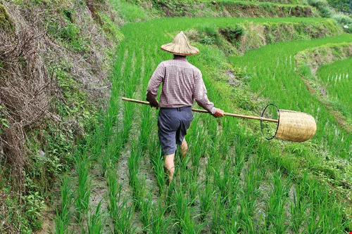 為了不用殺蟲劑,農民也絞盡腦汁。春耕插秧後,農民最怕一種會啃食稻株嫩葉、被稱為「揹屎龜仔」的負泥蟲。74歲農民阿樹伯想起兒時父親製作的竹編捕蟲器,靠著記憶重製,以物理方式防治害蟲。外表像長形畚箕的捕蟲器在稻株上來回掃動,抓到的負泥蟲就成了餵養雞、鴨的點心。