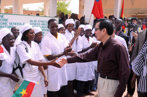 今年4月馬總統參訪布吉納法索「古都古市友誼醫院」,與醫護人員親切的握手。