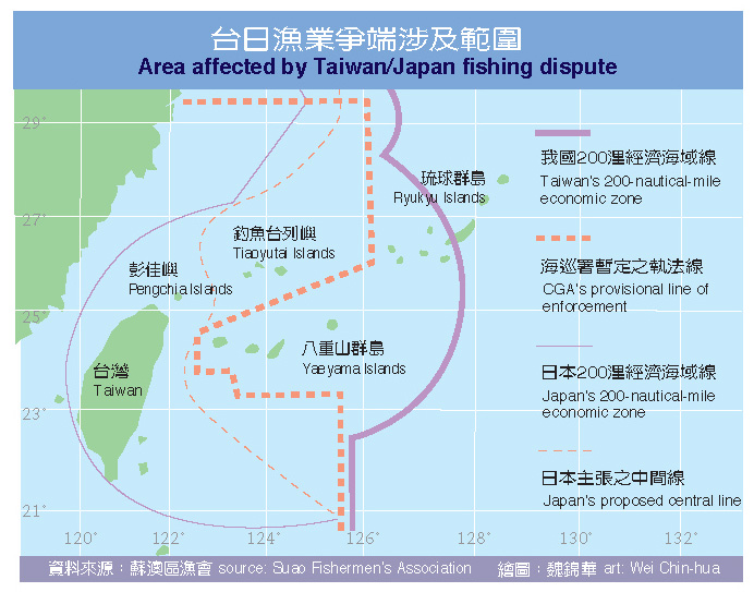 問題回溯至1994年,聯合國海洋公約制訂200浬專屬經濟區規則後,無可避免地造成相鄰各國家海域重疊問題。尤其台日之間,因為涉及主權爭議不斷的釣魚台,日本主張的200浬經濟海域竟包含了整個台灣,而台灣的200浬經濟海域則包含了部分的琉球群島。即使雙方主張的「暫定執法中間線」,也因為釣魚台主權歸屬認定的不同而難有共識。再如漁民傳統的東海漁區、釣魚台海域、日本八重山群島漁場,也因為緊鄰中間線,而爭議不斷。