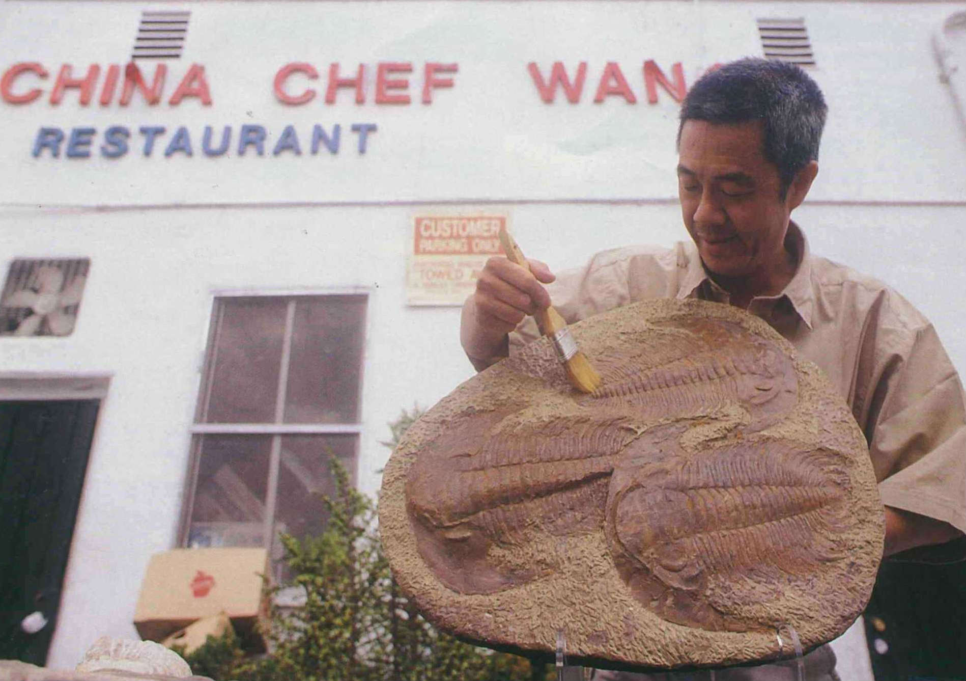 「人除了吃飯賺錢,還要有個放鬆心情的寄託。」雖然王基雄這麼說,但忙碌的餐廳生意不容得他清閒。一週開店七天,有時還會接到洛杉磯社區活動中心、公司行號的外燴訂單,一大清早就得去市場採買,往往到半夜一、二點店裡洗洗擦擦清理完畢,才算打烊。一天忙完,走回餐廳旁租賃的二房一廳公寓,他並沒有累得倒頭就睡,而是鑽入化石堆中,東摸摸西看看滿屋的「地球生物遺跡」,從地球最古老的生物三葉蟲、海洋菊石,到恐龍胚胎、腳印等數百樣上億年的化石,不到東方既白不會閤眼。
