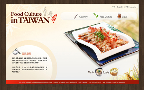 為了「把台灣推銷出去,把世界帶進來」,行政院新聞局於2011年11月底正式啟動一個「台灣美食文化網」。「近年來,各國政府莫不積極推廣美食、展現文化軟實力,我國卻尚未有針對國際深入介紹台灣美食文化與典故背景的傳播平台,因此我們特地建置中、英、日、西、法多國語文的『台灣美食文化網』,向國際社會介紹台灣精緻多元的美食和文化內涵,」新聞局長楊永明表示,未來還將陸續推出俄文、德文和韓文等語版內容,讓台灣美食成為世界美食版圖的新亮點。