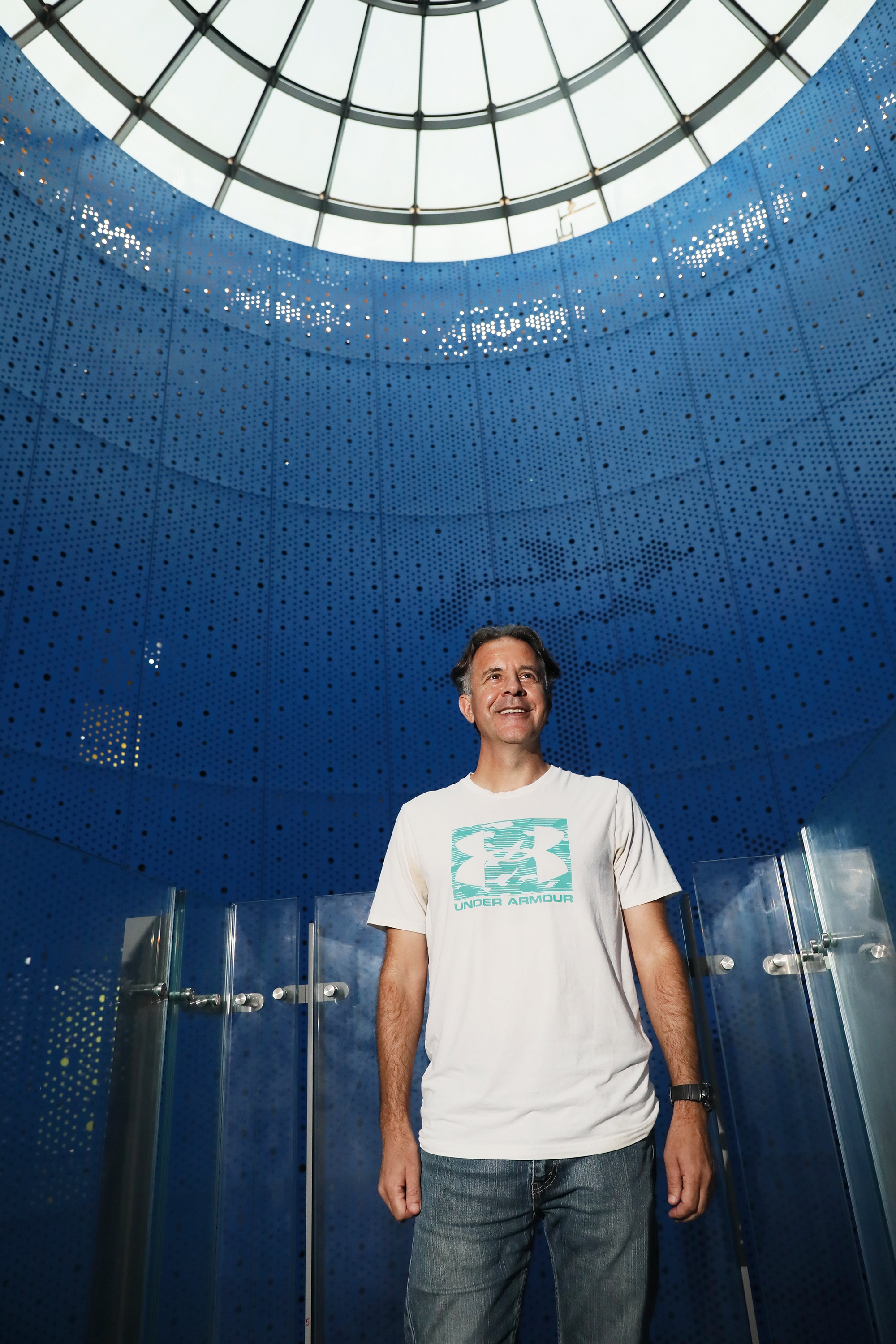 「這個場景,就是模擬宇宙混沌,生命起源的樣子。」裴思達興沖沖地來到宇宙館的休閒空間,指著屋頂的裝潢介紹著,眼中閃爍著對宇宙和生命的崇敬與讚嘆。1999年取得德州大學奧斯汀分校粒子物理學博士後,在哥倫比亞大學和威斯康辛大學麥迪遜分校繼續鑽研。2005年到英國雪菲爾大學,由講師到教授,近十年的教學和研究中,裴思達的學術成果更上層樓。