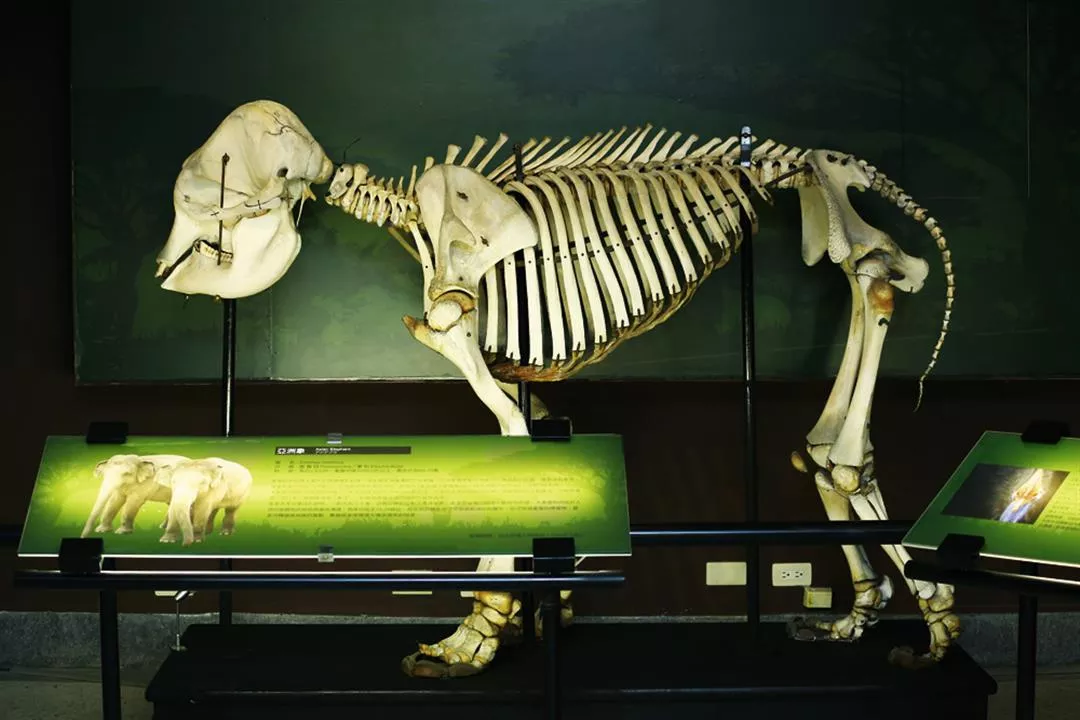 動物博物館讓觀者近距離觀賞南方食火雞、亞洲象(右圖)等大型動物的骨骼標本。