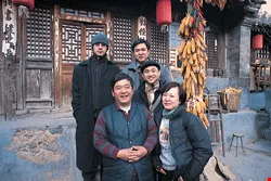 (右圖)北京市郊的爨底下古村中,完整的明清建築群、風味別具的農家菜,吸引許多藝術家落腳創作。下圖前左為村長韓孟亮、中為年輕的旅遊作家關孫知,打從學生時代就背著書包遊天下,前年剛自研究所畢業的他,立刻定居上海,以大陸為寫作事業的新舞台。
