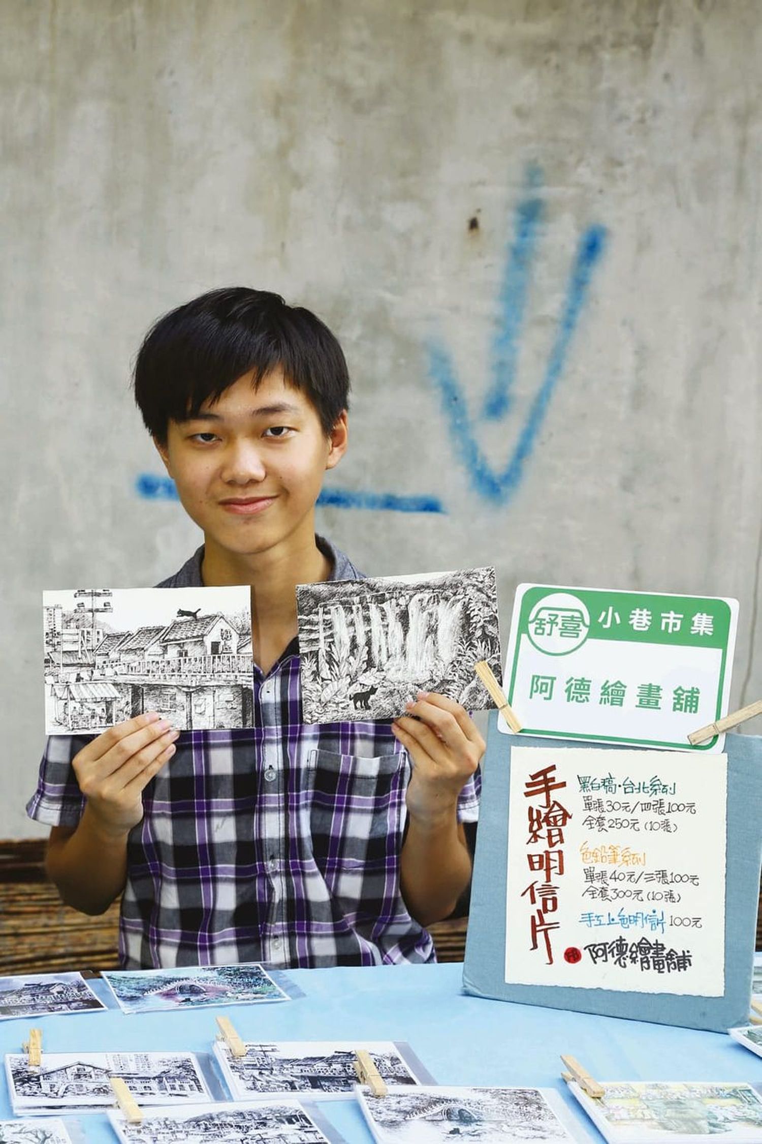 阿德用原子筆畫出台灣 老城區的景致,筆觸細 膩生動,讓人意外的是 他今年才16歲。