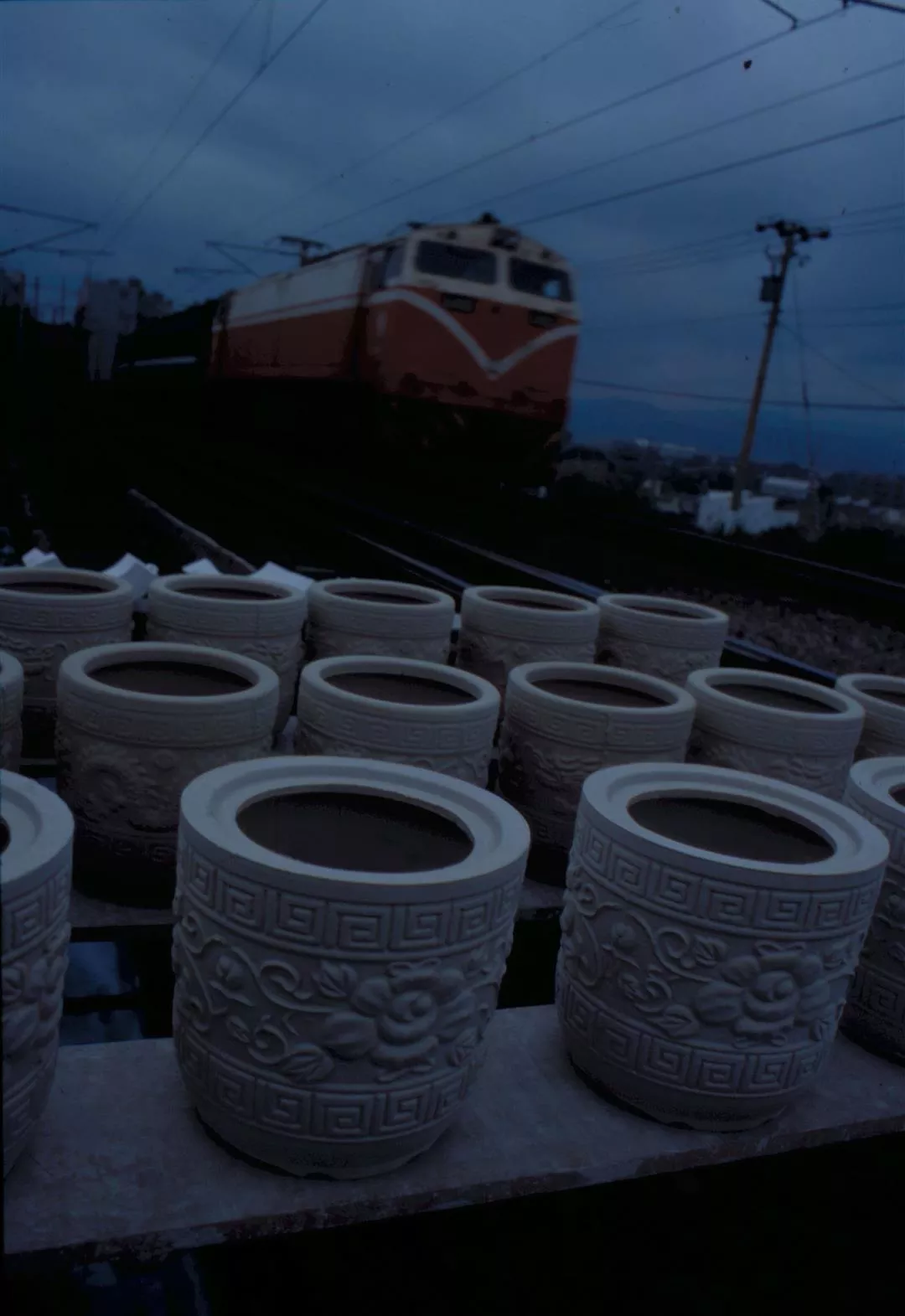 急駛的火車與鐵軌旁靜立的素胚相映成趣。(歐陽芷汀/楊永山/鐘永和/趙蘊嫻)