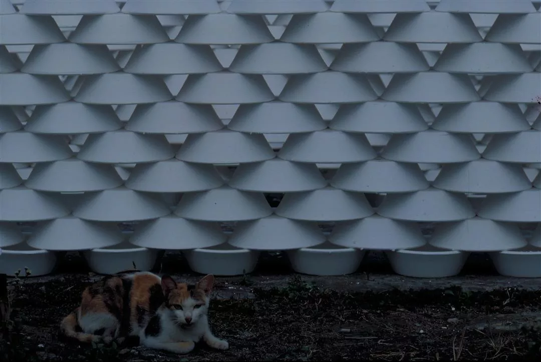 小貓蹲在層層疊起的素胚旁。(歐陽芷汀/楊永山/鐘永和/趙蘊嫻)