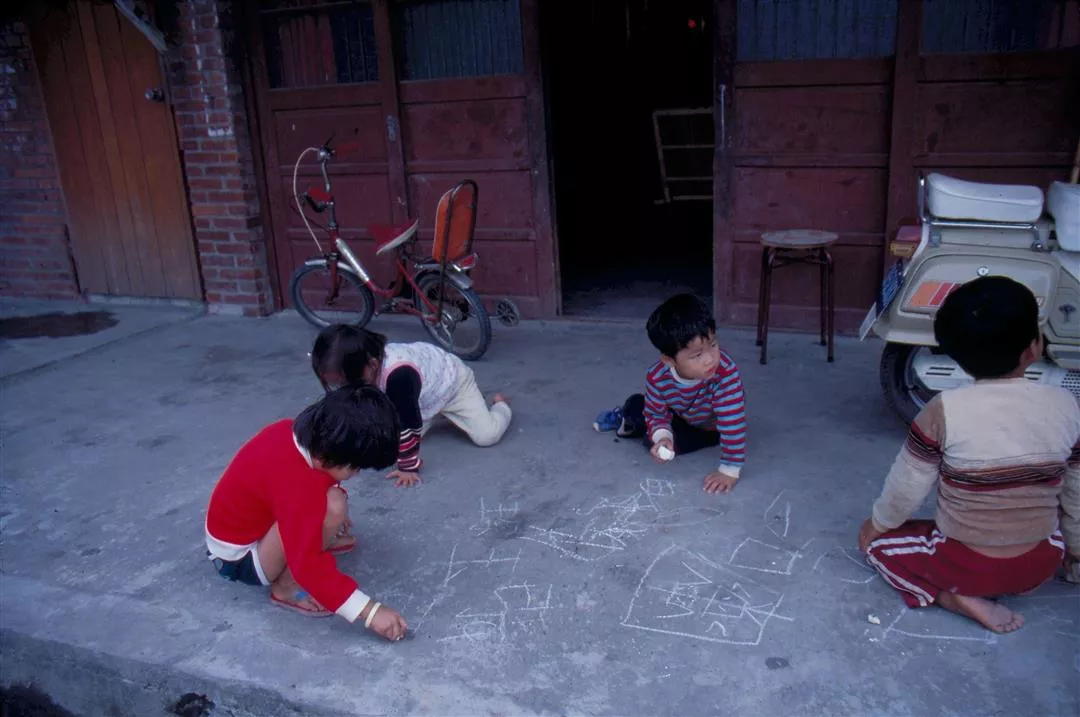 當地的孩童常在廊下嬉戲,水泥地上用粉筆畫花樣,令人勾起童年的回憶。(歐陽芷汀/楊永山/鐘永和/趙蘊嫻)