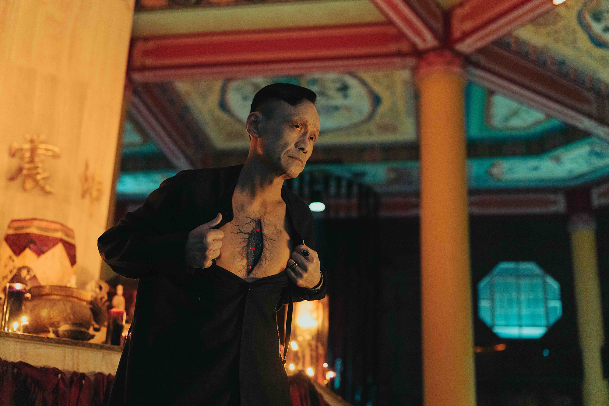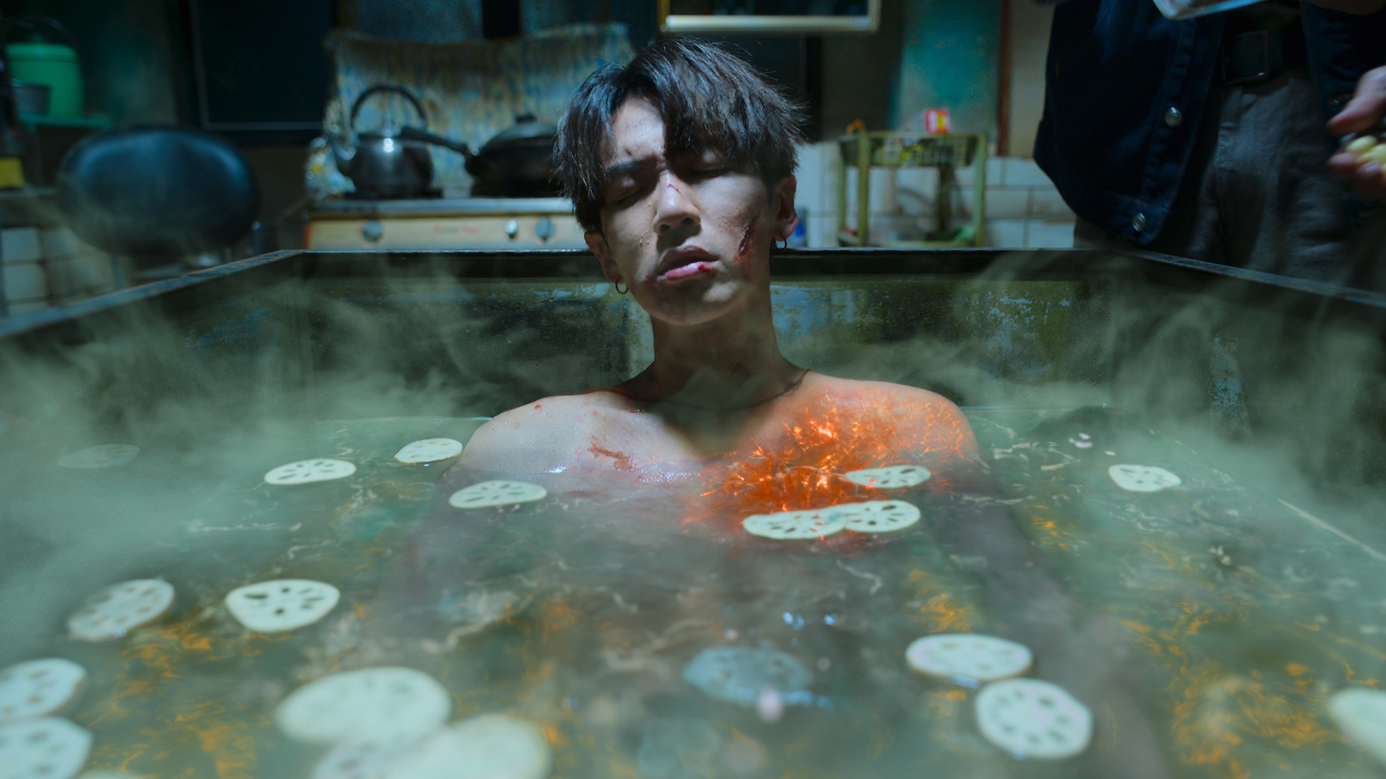 關於韓杰使用尪仔標後的副作用,我們選擇以「灼傷」作為主要視覺概念,搭配高溫質感的特效,例如煙霧與熱擾動等細節,希望讓觀眾能直觀感受到炙熱與不適。此外,柯震東飾演韓杰的深刻表現,也是傳達這種狀態的重要關鍵。