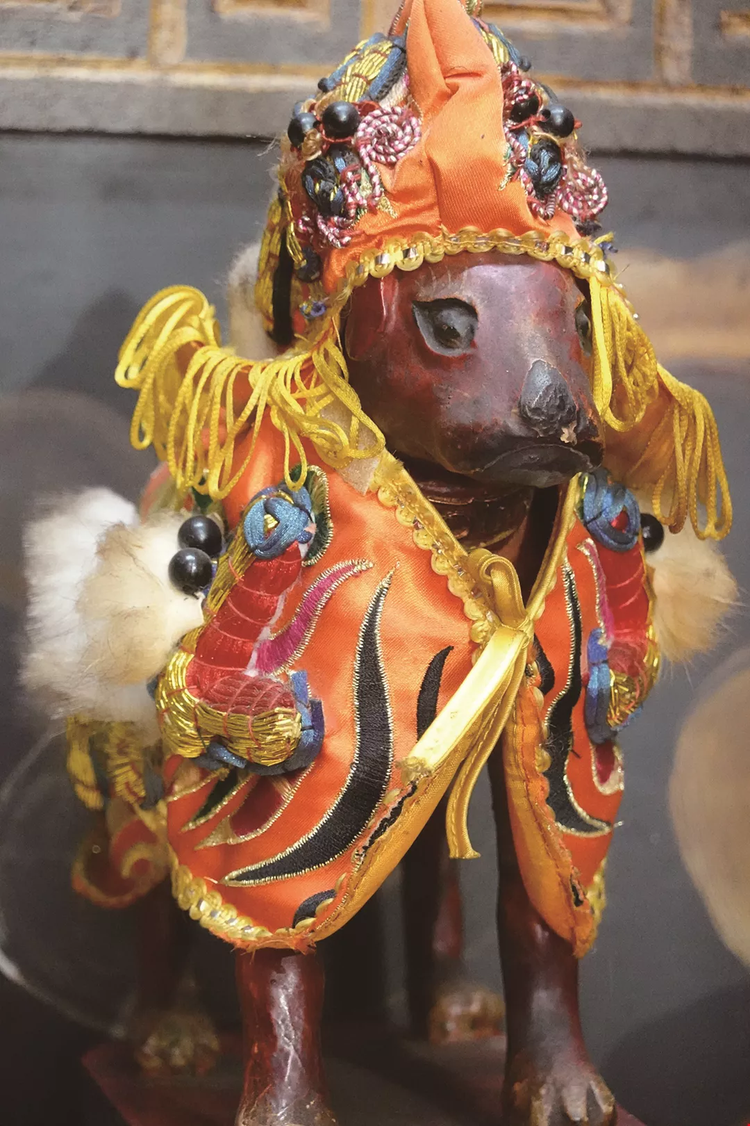 鹿草圓山宮的獵狗公,據說神威靈驗喜愛吃炸雞。