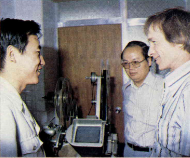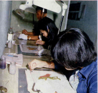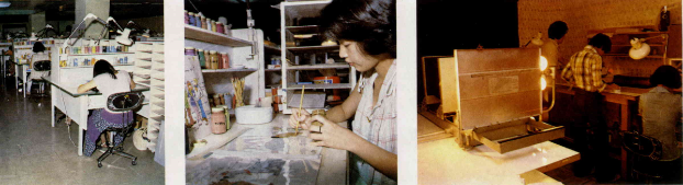 王中元(上圖左)今年三月回國,與兄弟姊妹、朋友合作,並集資約一千二百萬元台幣,建立廠房,購進新機器、設備,網羅了國內知名的卡通畫師,成立了國內第一家企業經營的卡通製作廠——宏廣公司。