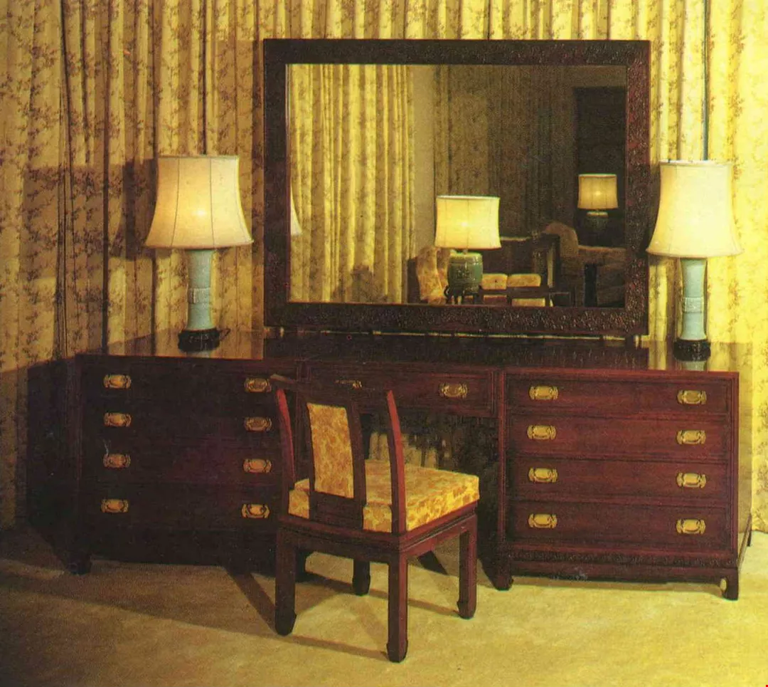 傳統木雕的梳妝台,新舊合璧,堂皇高雅。
