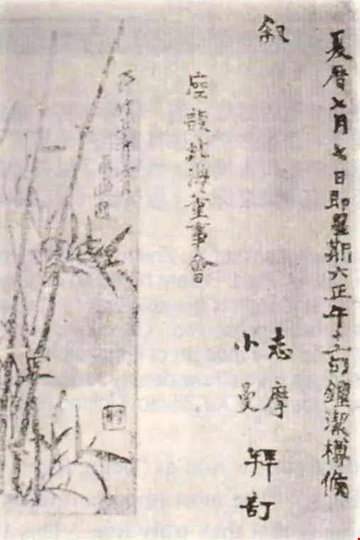志摩與小曼在一九二六年七夕於北海公園訂婚,十月結婚。這是訂婚請柬。(取材自《談徐志摩》遠東圖書公司出版)(取材自《談徐志摩》遠東圖書公司出版)