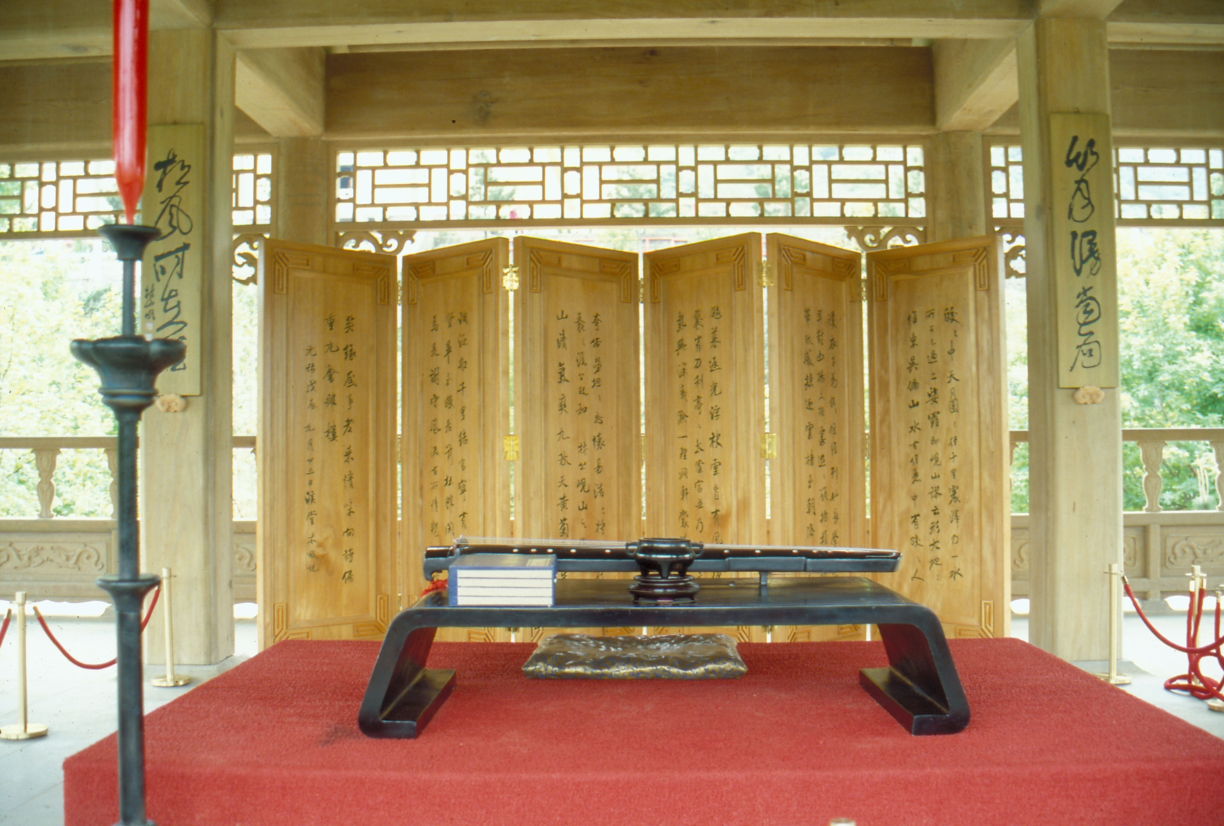 圖1.:松風閣中的古琴聯屏,使園子更富文人氣息。(楊永山/李乾朗/黃永洪/故宮提供)