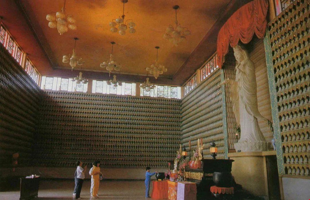 觀音菩薩在中國的道場遍佈,不過最具盛名的當然是位於浙江定海縣、屬於舟山群島之一的普陀山。在這個長不過廿里、寬卅四里的海島上,僧院處處,都以供奉觀音菩薩為主。