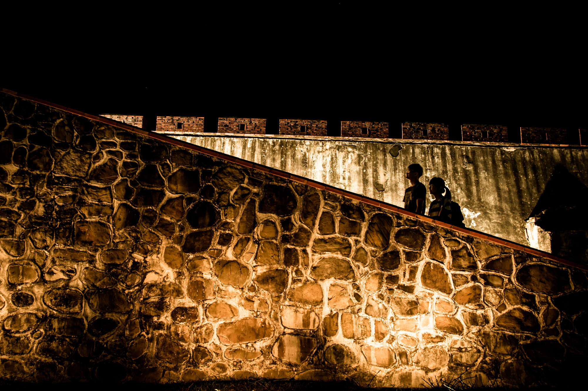 改造後的風神廟,拆去刺眼的路燈,光源改置於牆面底部;廟宇裡的石鐘鼓樓,也在無眩光的照明下,突顯挑高的透空結構;入口處的大紅燈籠改換上方形吊燈。夜裡的風神廟,包覆在溫暖的黃光之中,百年古廟靜謐沉靜,讓人感知神祇庇佑。