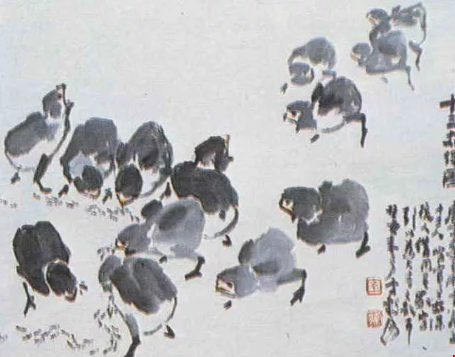 圖4:「十三太保」圖中有十三隻爭食的小雞。(楊永山)