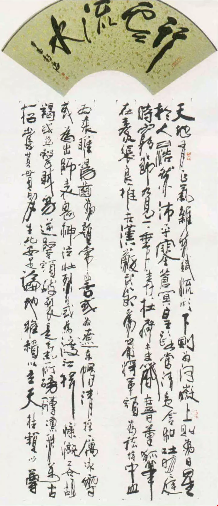 圖:李轂摩的書法,氣勢奔放,線條蒼勁,造型獨具一格。上為他題了字的扇面,下為他寫的「正氣歌」字幅。(楊永山)