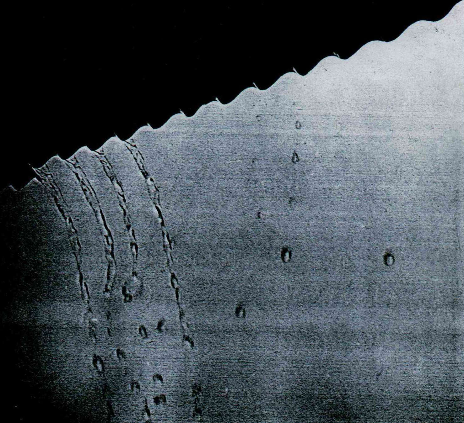 水滴凝集得很慢,而且越來越慢。他直望著那些水滴,突然伸手過去,用手指在天線的橫桿上輕輕揩過,小水珠急速地集成大水珠,篤!篤!篤!