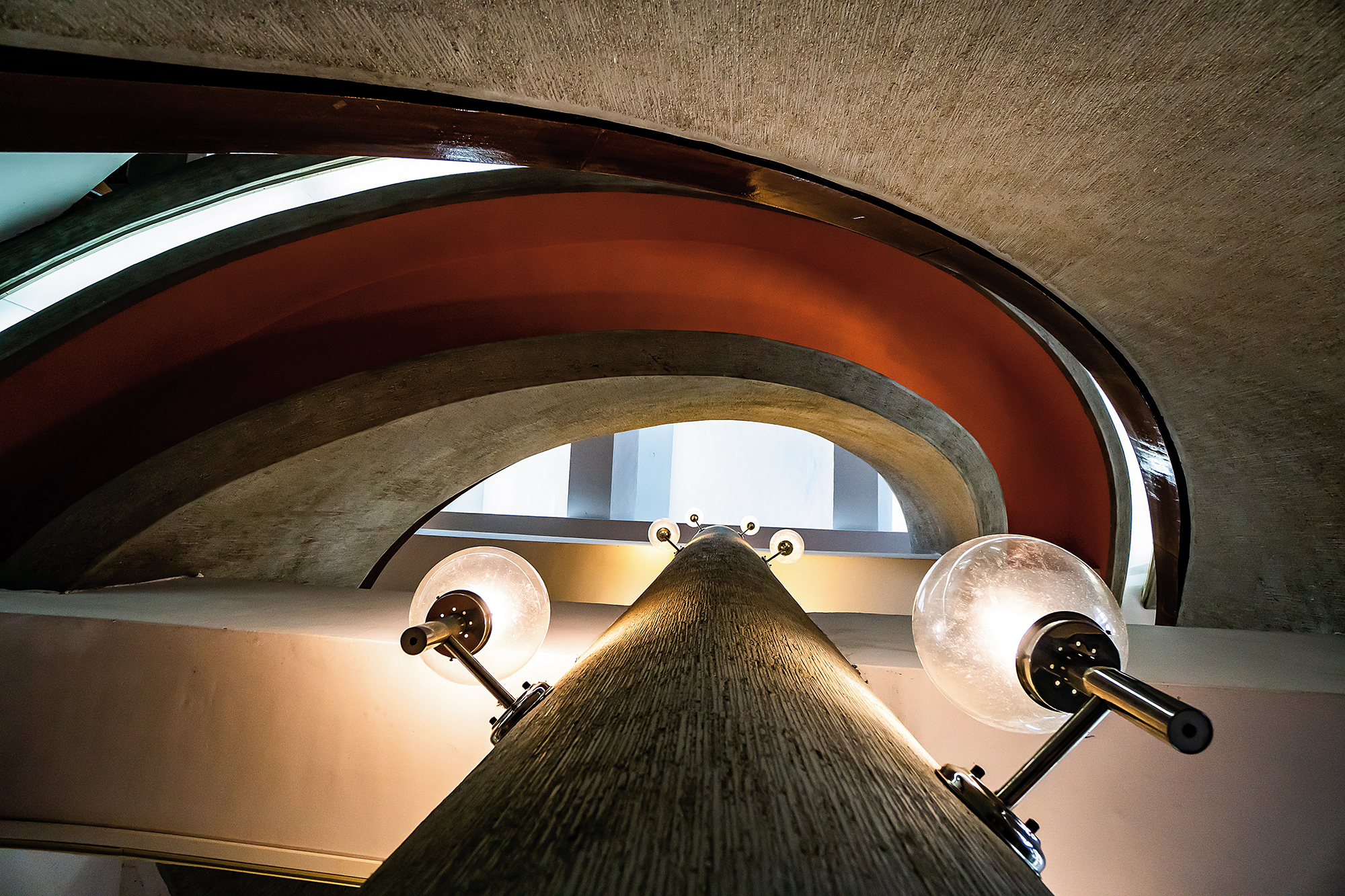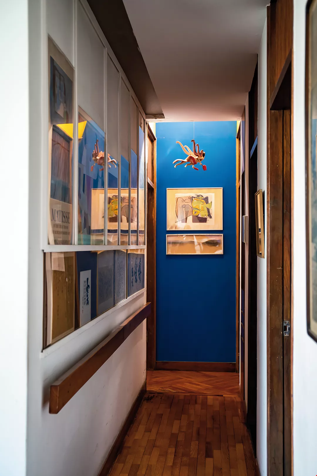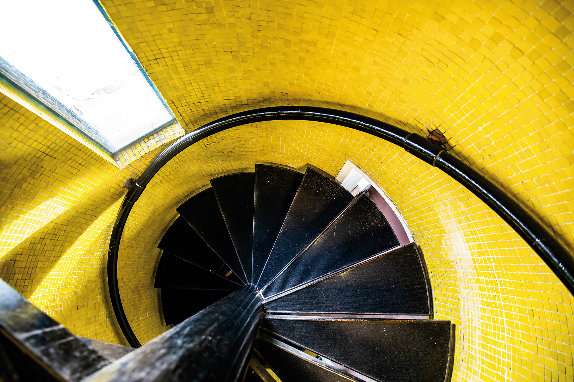 雪舍走廊的盡頭,挑高處特別加裝天窗,引陽光入內,並裝上抽風機,引導室內空氣流動。