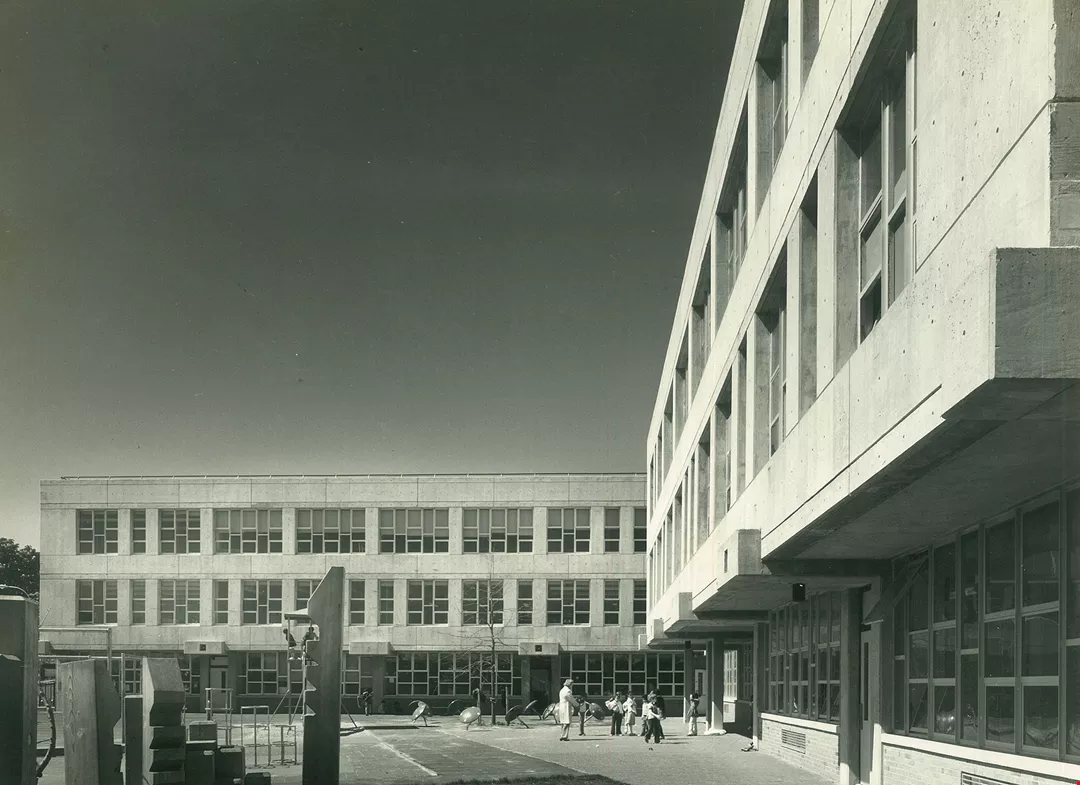 王秋華的設計以公共建築為主,旅美期間留下許多教堂、校園、社區中心的作品,圖中為位於紐約的Hubert Humphrey School。(王秋華提供)