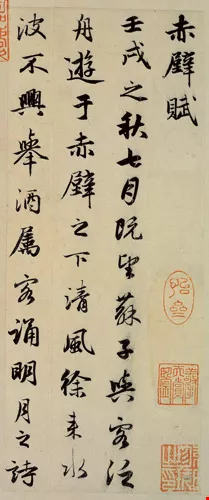 元朝趙孟頫的書法《行書赤壁二賦》是文建會核定的故宮「國寶」之一。