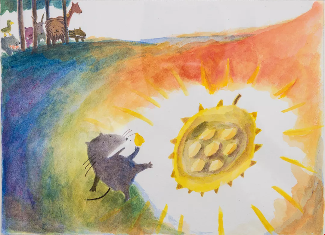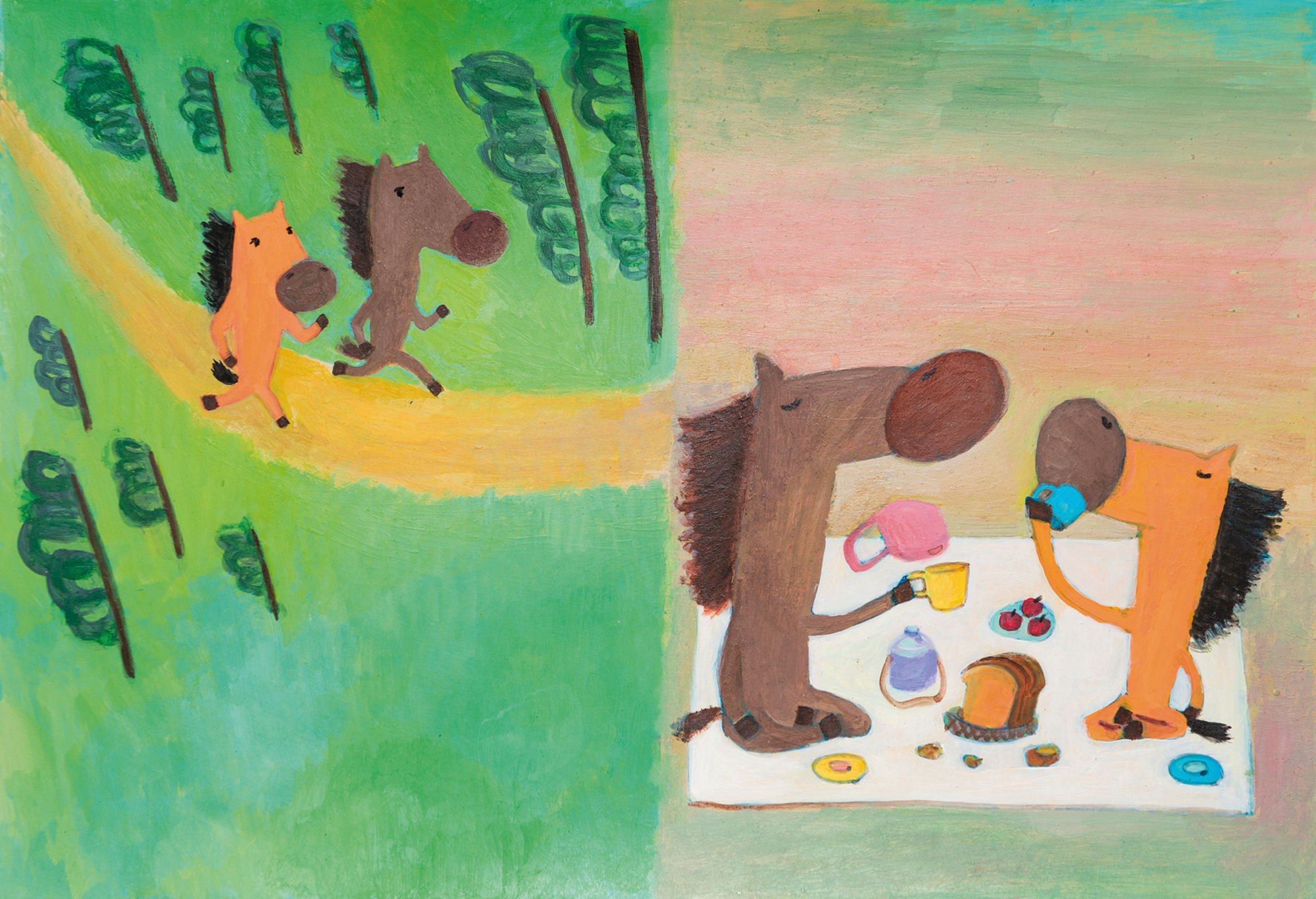 吳欣芷的畫筆觸樸拙,色彩簡單, 卻飽含情感,充滿童趣。 (吳欣芷提供)