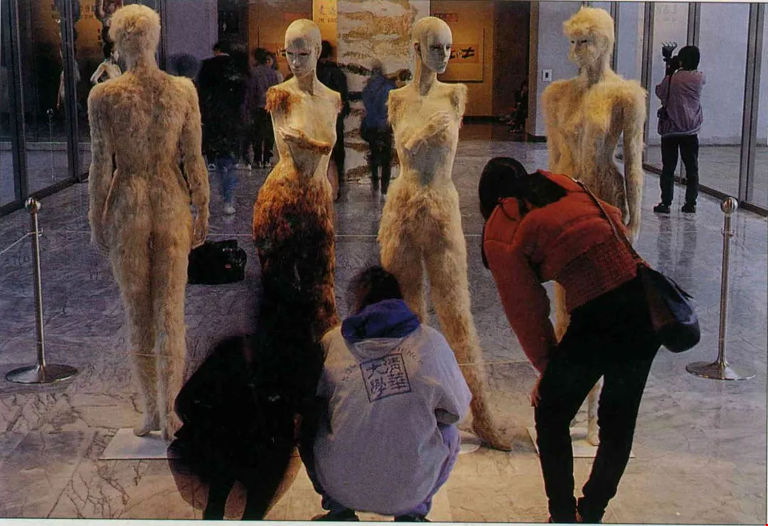 台北市立美術館(北美館)一樓的迴廊內,幾具等身的人體模型,長著疏密不一真實的毛皮。觀眾走到作品的跟前,好奇地歪著頭看著「她」?「牠」?正起頭來憨憨地笑一笑,又搖搖頭走開。這是「啥米」?