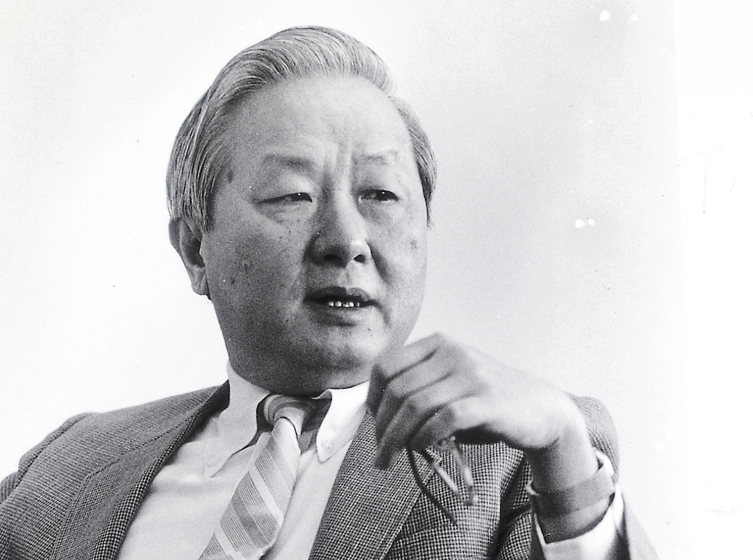 胡定華(左)毛遂自薦擔任RCA技轉計畫主持人,展現對台灣半導體產業發展的熱情與遠見。右為當時經濟部長孫運璿。(CNEX提供)