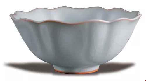 蔡曉芳仿汝窯葵口盌,口徑12.8公分,1998年製。