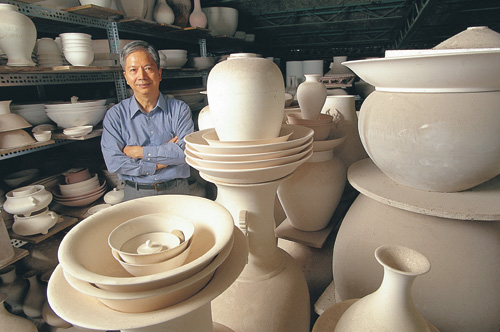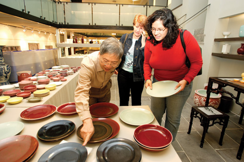 蔡曉芳不僅讓古代名窯重現,也讓精緻陶瓷融入生活。此次美國前總統柯林頓來訪,行囊禮物中也帶走了蔡曉芳的精品。(楊文卿攝)