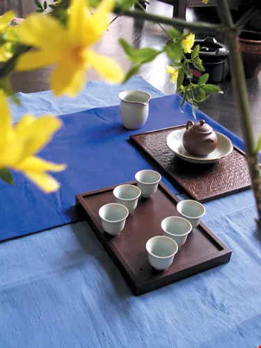 摘取黃花一段,再自窗外借一份景,端坐品茗,愜意舒懷。(趙湘玲提供)