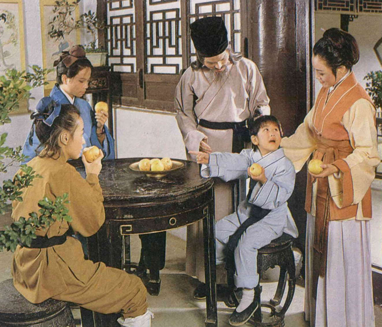 孔融是家中七位兄弟中的老六,自小便很尊敬兄長。他平常不違逆兄長的囑咐,每當家中有好東西吃時,也總是守份地站在一旁,等兄長都取用後才拿,不曾與兄長計較吃多吃少。