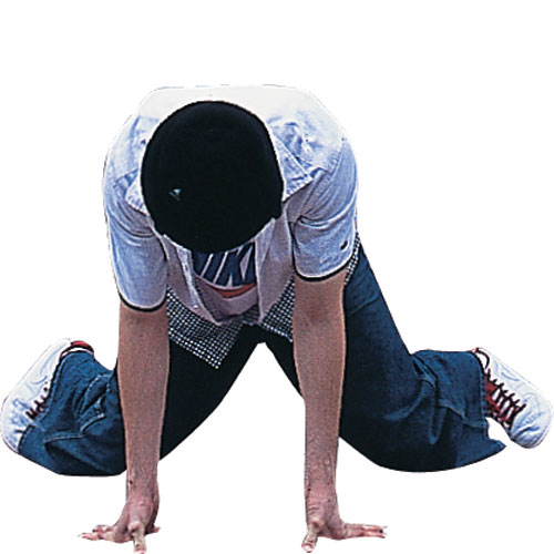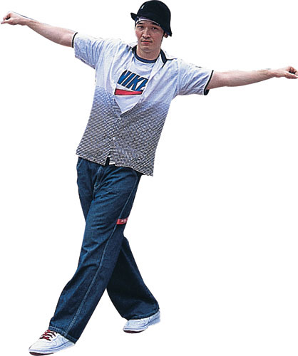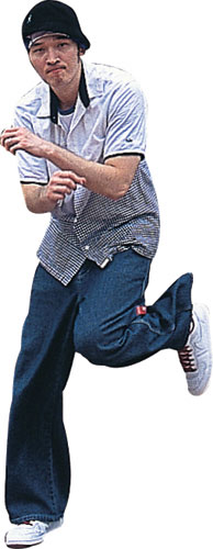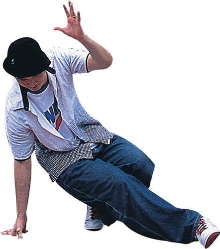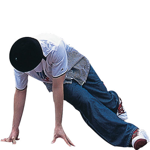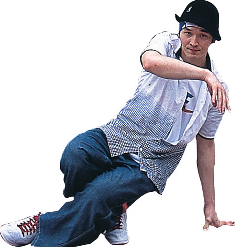 接著他再來個結合「footwork」和「spinning power moves」的旋轉動作,將身體捲成一團,像蠕蟲似的在地上打滾的「worm」舞步,最後以定點「freeze」向對方宣示他的立場,酷酷地完成整場「戰役」。