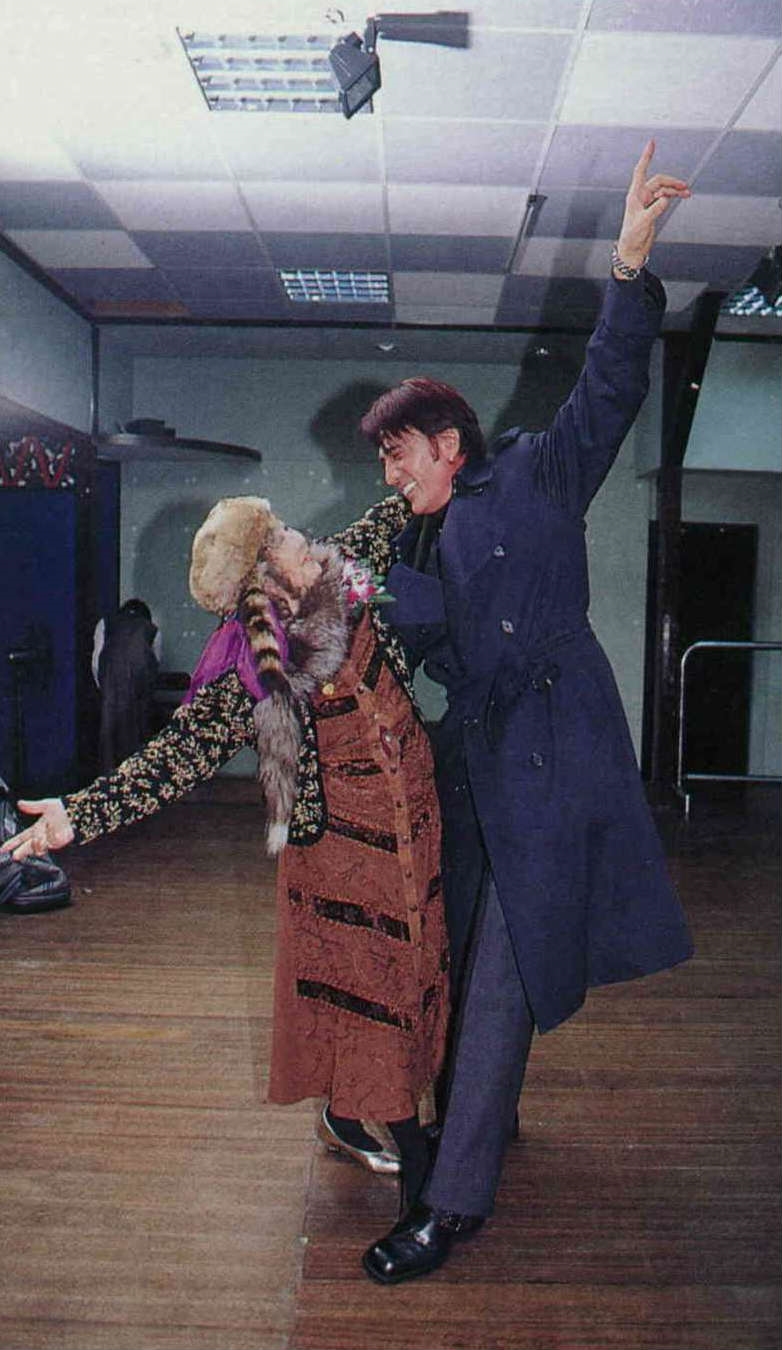 一回到舞蹈社,學生們紛紛隨著音樂伸展肢體,蔡瑞月也與最頑皮的學生、六○年代的歌舞紅星林沖跳起雙人舞。(邱瑞金)