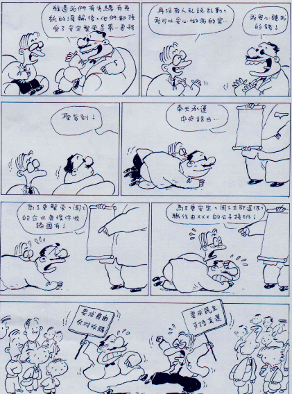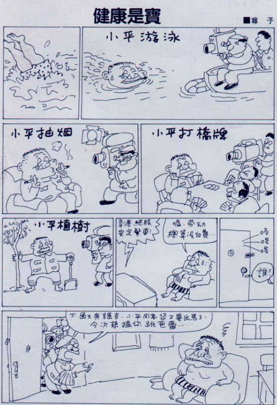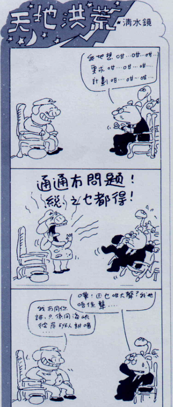 會這樣做,是他有另一個堅持,不願只聽高層人士怎麼說,他希望自己更接近一般大眾。因此對港人新流行的俚語、諺語、比喻,他也暸若指掌,並用在漫畫中,既可沖淡政治題材的嚴肅味道,也讓讀者看了會心一笑。