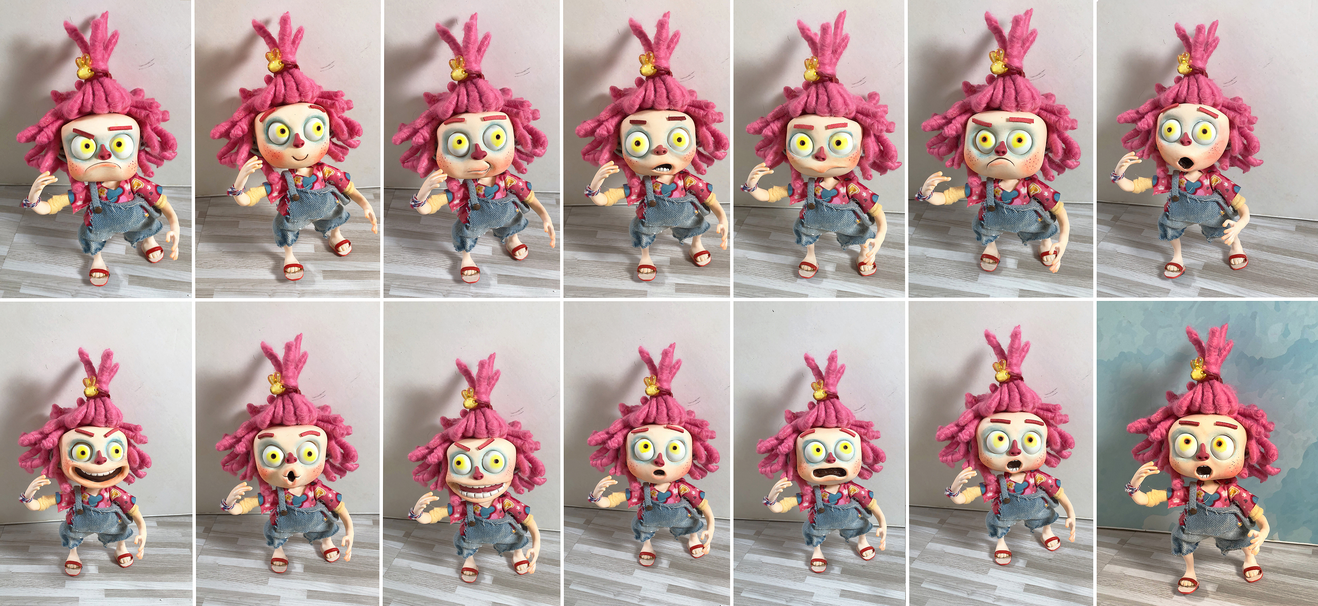 「捏麵人追求的是客製化、個別化,而非工業化生產的量產化、精準化。」黃勻弦說。這樣的特質,與擅表現媒材質感的停格動畫一拍即合。觀察黃勻弦製的人偶,皮膚上淡淡的指紋,用剪刀切出的手指、牛角籤拉出的浮誇嘴型,正隱藏著她獨一無二的簽名。