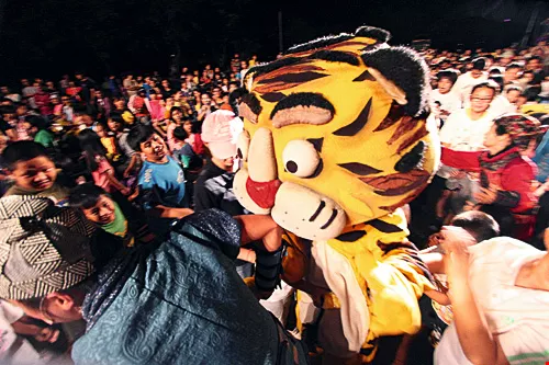 但劇幕一拉開,就看到、聽到汽車、摩托車和孩子笑聲漸漸接近,散落各山頭的居民慢慢往阿里山國小聚集,人口只有三千多人的阿里山,今晚翻山越嶺而來的大朋友和小朋友超過一千人。