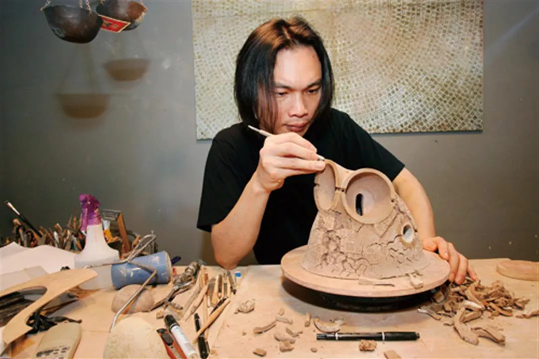 1996年,他從台北搭乘平快火車到桃園龍潭,一無所有地面對完全歸零的自己,心裡只有一個念頭:「我要當藝術家!」同年成立「九座寮工作室」,每天拉坯、做陶,生活實在撐不過時就打打零工,便利商店服務員、快遞送件員、清潔工他都做過。這些經驗也讓他學會謙卑與尊重,「任何焊接科班學徒,精準度都不會比巷口修冷氣的阿伯高,因為他們以此維生,不能出錯。」